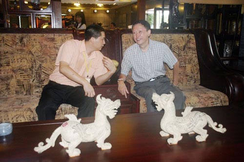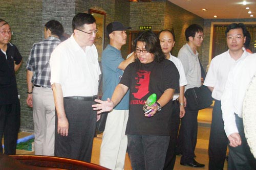 北京林作新教授 友聯(lián)戴國(guó)總経理在參觀中親切交談(上圖)