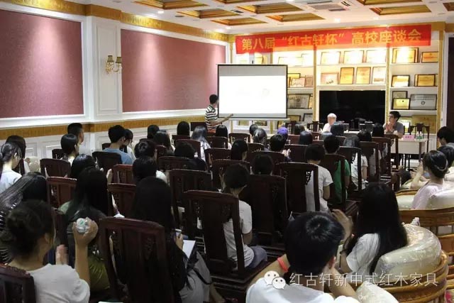 2016年6月17日,新中式紅木響徹中國。華南農(nóng)業(yè)大學70余名學生專程為新中式而來,于紅古軒紅木文化館,開展零距離的新中式紅木文化之旅,暨第八屆“紅古軒杯”新中式家具設(shè)計大賽分享會。