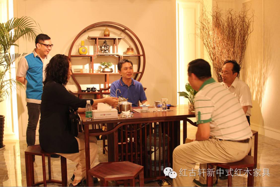 陳超強董事長十分喜歡紅木家具,久聞紅古軒大名的他,于紅古軒細細品鑒每一件紅木。