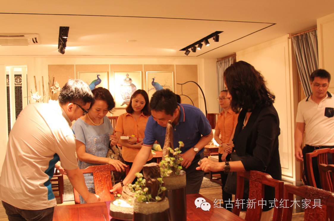 2016年6月30日,中國紅木家具十大品牌,中國新中式紅木家具掌門人,以極致的品牌魅力,迎來了廣東中匯合創(chuàng)房地產有限公司董事長陳超強先生一行,特別為紅古軒而來,并于紅古軒開展了一場紅木與現(xiàn)代新中式空間的美妙之旅。紅古軒副總經理李春江先生全程接待來賓一行。