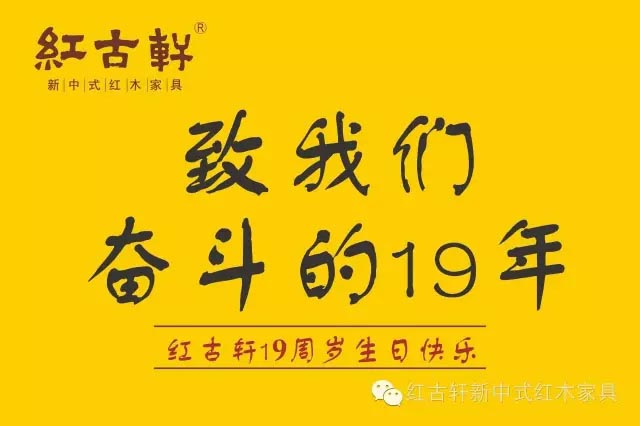 此刻開始,世界的東方,閃閃發(fā)光的紅古軒品牌,又在續(xù)寫紅木家具下一個十九年的不朽傳奇。