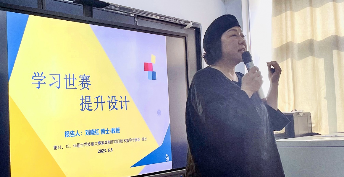 宣講會上,第44、45、46屆世界技能大賽家具制作項目技術(shù)指導(dǎo)專家組組長劉曉紅博士/教授;與紅古軒營銷總監(jiān)楊晶一起,為同學(xué)們帶去了一場別開生面的新中式創(chuàng)想之旅,并邀請同學(xué)們參與到第十五屆紅古軒杯新中式家具大賽中來,一起探索中式家具更美好的未來,共同預(yù)見更美好的未來時刻。