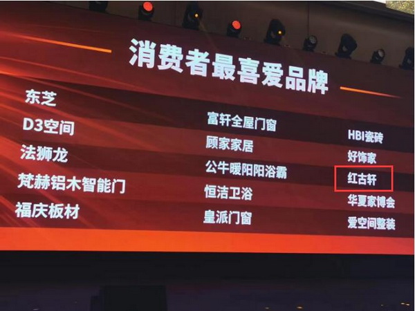 2023年11月23日,優(yōu)居、騰訊家居·貝殼特別發(fā)起的“時代追光者”——2023年度家居品牌力量頒獎典禮,在廣州隆重舉辦!紅古軒憑借卓越的產(chǎn)品品質(zhì)、企業(yè)核心價值與創(chuàng)新力,成功登榜騰訊家居2023時代追光者年度家居消費者最喜愛品牌。